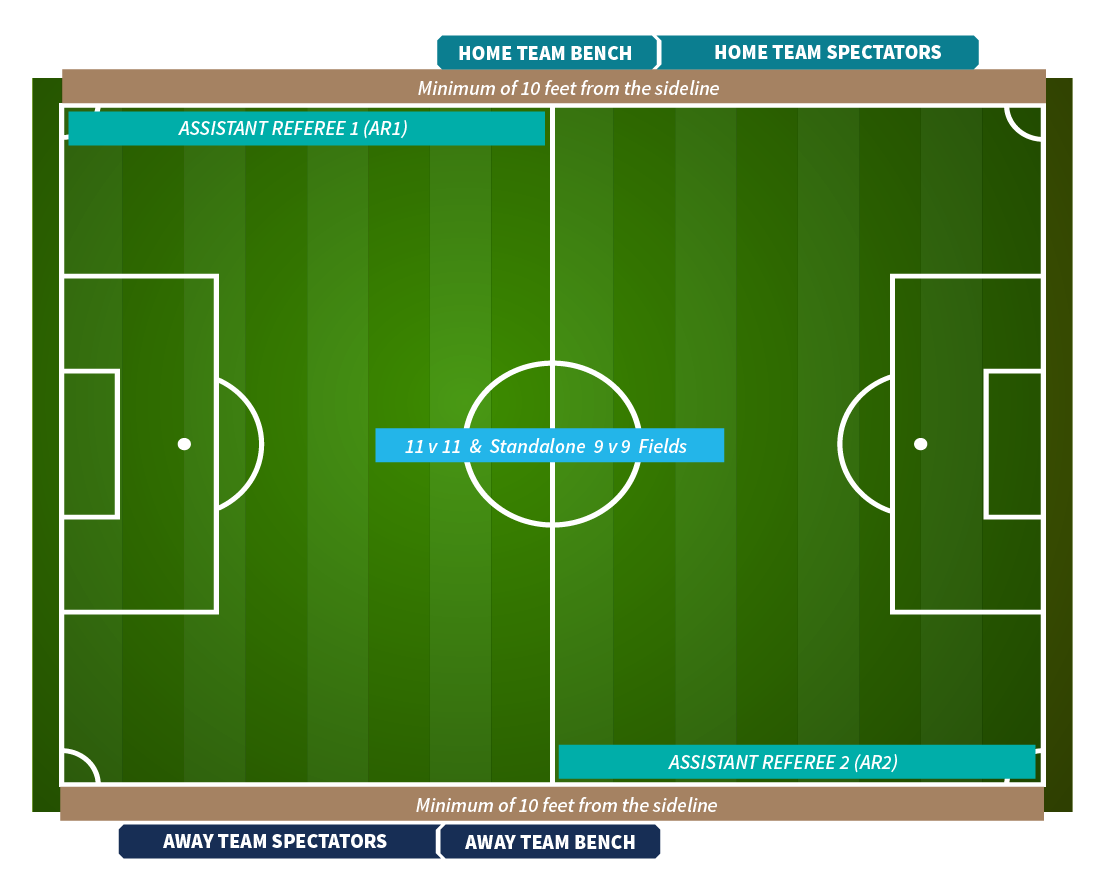 When parents exhibit positive and supportive behavior, it creates a positive environment where children can develop not only their physical skills but also their emotional and social well-being. Encouraging words, respectful interactions with coaches and officials, and demonstrating good sportsmanship teach invaluable life lessons about teamwork, respect, and resilience. Conversely, negative sideline behavior, such as aggressive criticism or confrontational outbursts, can be detrimental, fostering anxiety, pressure, and diminished enjoyment for young athletes. Please follow the below sideline protocols where Home and Away spectators sit on oppostie sides of the field.
